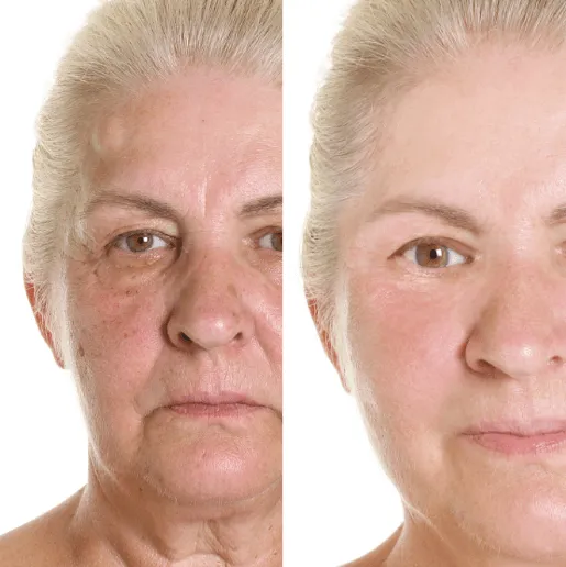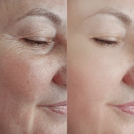 Die pergamentartige Textur unter den Augen verwandelte sich in glatte Haut.